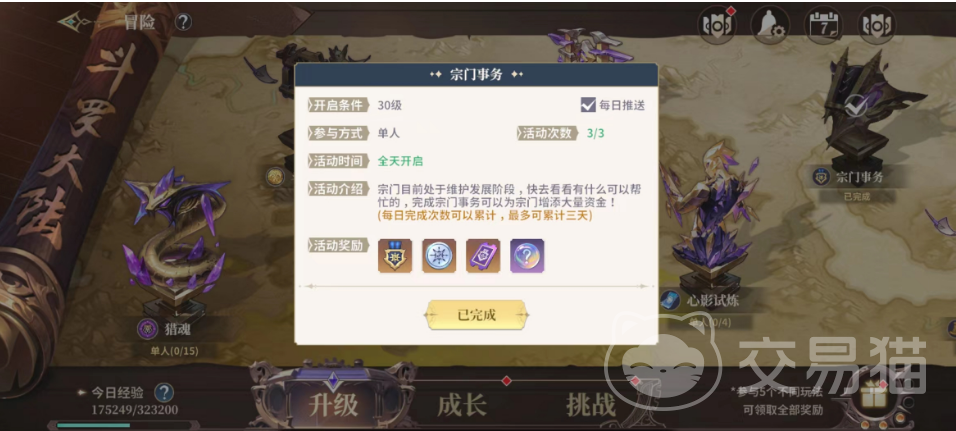每一个宗门都是需要提升等级解锁上面更多建设的,所以这个宗门事务的玩法实际上也是跟宗门的建设有关的,大家完成之后还可以拿到专属的宗门贡献度哦,想要参与这个玩法大家必须要提前加入宗门,然后到宗门的领地中找到台阶上面的NPC蓝普,在他这里大家才可以领到宗门事务的任务。