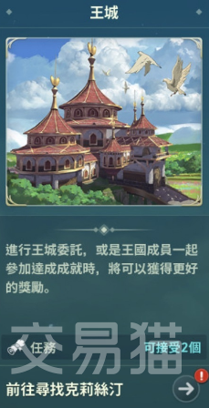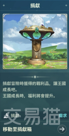 比如捐献任务,捐献任务关乎着王国的成长,需要捐献一些战利品,玩家们每天可以接受两次王城委托,推荐玩家们与王国中的成员一起完成,奖励会更高,而剧场则是给玩家嗯带来增益效果的地方!