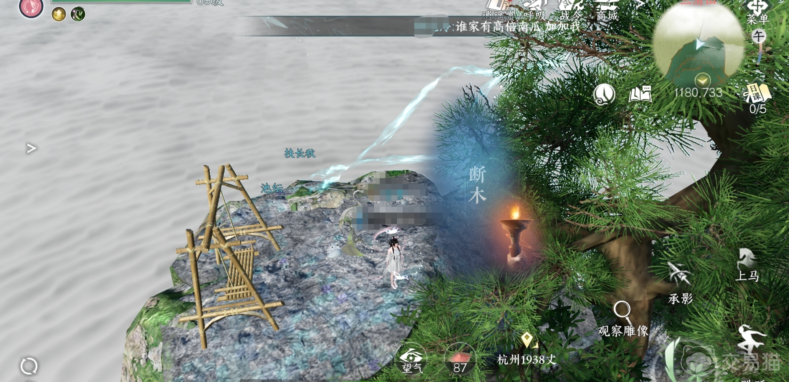 接下来就来到旁边的山顶坐标是(1181,731)这里会看到仙鹤雕像点击就会出现断木提示,然后我们只要用火系的招式点燃宝箱,然后打开宝箱就能完成任务啦。