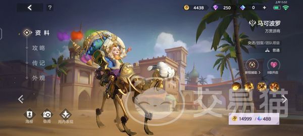 他也是一个非常强的辅助,他的原皮肤是万贯游商,坐在机械骆驼的背上,小小的一只头上戴着巨大的帽子,他在游戏中操作难度比较低,主要是给队友起到支援效果的,可以给队友进行大量的恢复,带来非常强的团队增益效果。