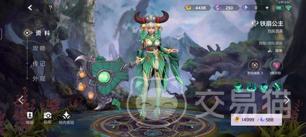 她在外形上整体呈绿色,袖子有点像芭蕉扇的叶子,头顶还有一对角,并不能算特别好看,但是她在辅助中效果是比较强的,她的控制团队增益效果比较好,找准时机可以冲到敌方队伍中开团,然后再让队友跟上即可。