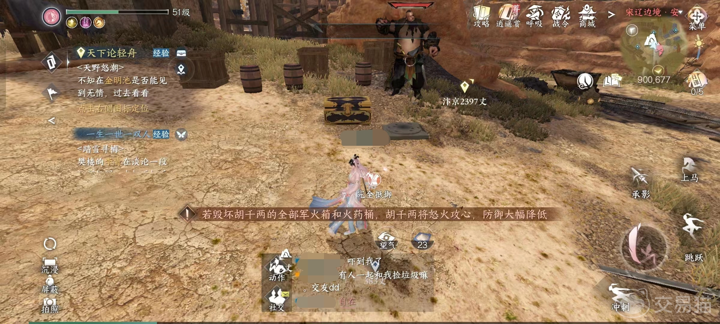 小编对逆水寒手游胡千两在哪呢的位置分享完成了,在充满危险的宋辽边境里,移动要足够小心,一不留神可能会掉入到军营里,该游戏还有更多的攻略在豌豆荚平台里,欢迎小伙伴们打开阅读。