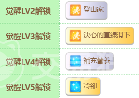 觉醒后还会有新的四个技能,其中“登山家”和“决心的直线滑下”分别增强了米浴的上坡和下坡能力,而“补充营养”则令其能在竞赛中期略微回复持久力,“冷却”则和之前初始技能中的“深呼吸”一样是降低直线冲刺时的疲倦概率。