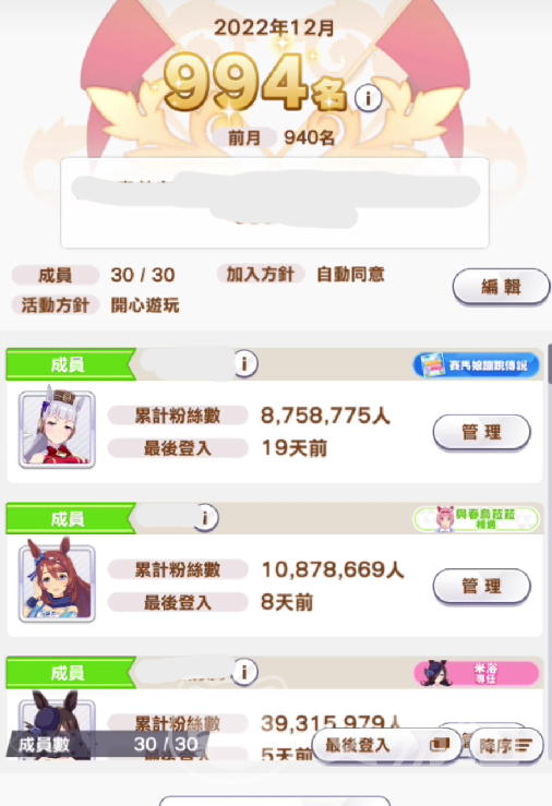 此外,就是我们的公会排名所获取的相关宝石奖励。这个排名不是根据玩家们的强度来算,而是根据玩家们的养成粉丝数量来确定的。该排名一周会统计一次,在这周内所有公会玩家们所培养的角色总粉丝数量会进行一个总计算,当达到一定的要求或档次的时候,就可以根据相应的粉丝数量来获取到相应的宝石奖励了。