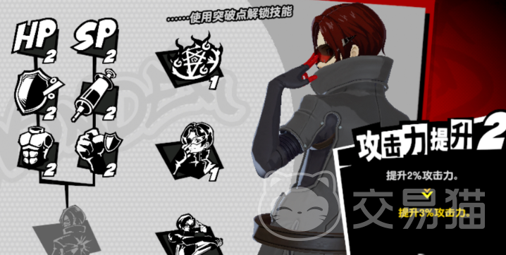 使用这些灵感点可以解锁一些技能,技能对应的不同增益,像是加攻击、加血、加精力值、暴击率、暴击效果等等,还有伤害减免、伤害加深等,部分技能甚至可以提升面具的技能等级。一些高级的技能需要点出前置的技能才能解锁,因此对灵感点数量的需求也更多。