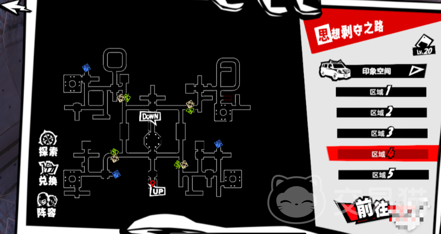 利用特殊的“猫车”可以在不同区域之间跳转,随着怪盗团队的等级与知名度提升,可以探索的区域也会变得更广泛,攻克殿堂达到一定的进度就会开放新的区域。初始阶段的印象空间难度不大,轻松可以全收集并突破20级。