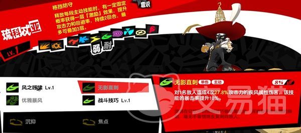 他的一技能可以在战斗中选中一名敌人,对其造成112%的伤害,而且还有48%的几率将敌人带到风袭状态,让这名敌人接下来的两个回合都会处在该状态中。二技能可以选中一名敌人,对其使用风属性伤害进行攻击,每次击中敌人造成27.8%的伤害效果,而且该技能在使用的时候,暴击率还会提升10%哦。