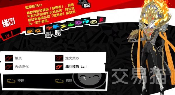 角色在使用一技能的时候,可以直接对选中的一名敌人造成38.4%的攻击,并且给自己增加12.6%的生命值,而且还有75%的概率,让这名敌人进入燃烧状态。二技能是一个群体攻击的技能,在释放的时候可以对敌人群体造成33%的火焰伤害,如果此时敌人已经身处燃烧状态的话,还可以让角色立刻叠加两层献祭者,并且让该名敌人处于圣火状态。