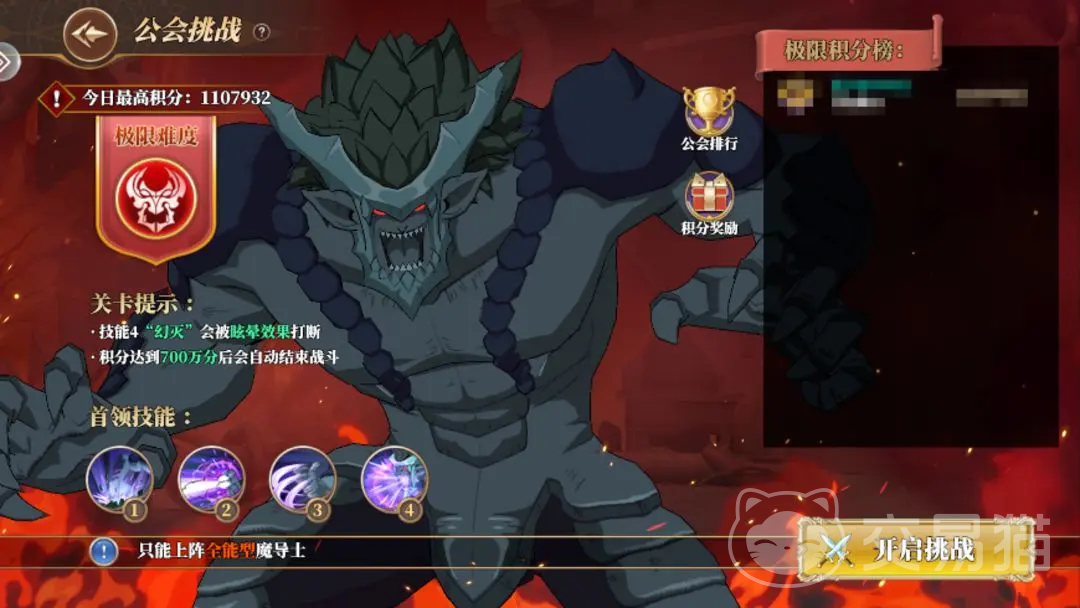 3、在该模式的极限难度下,每日限定上场的角色是不一样的,用这些角色可以对B0SS造成更多的伤害。大家在打该B0SS的时候要记得打断他的攻击,比如使用带有眩晕效果的技能可以打断技能4“幻灭”。