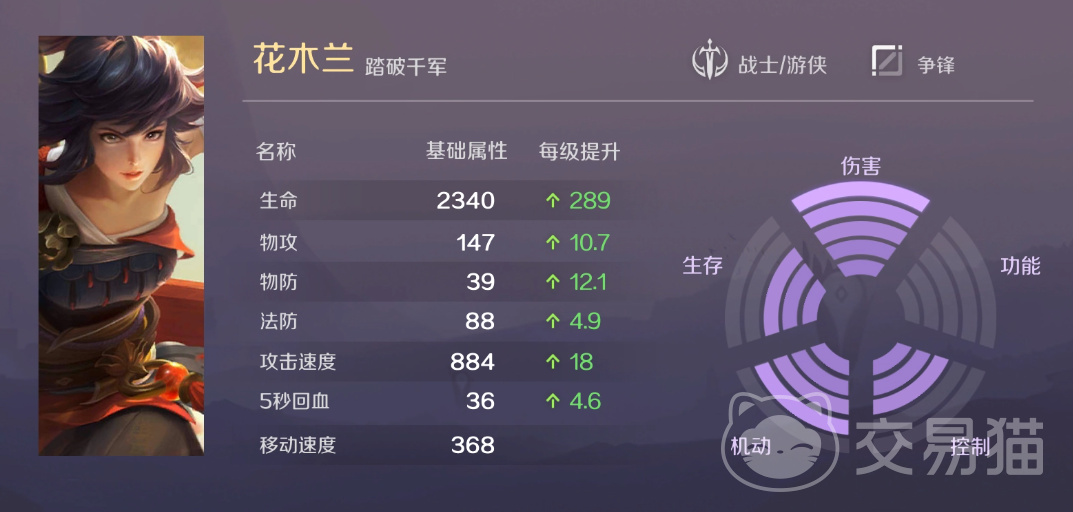 花木兰:这是个生命和物防成长都很高的战士,在实战中兼具顶级的伤害和机动性,一手冲锋和横扫能力相互配合能打得敌人措手不及,而且三技能的多段斩击也是伤害爆表,同时她兼具减速与击飞手段,不论留人还是打AOE都相当厉害。