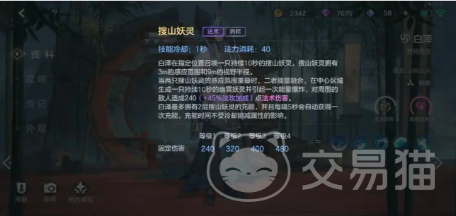 所以想要玩好白泽第一个需要做的就是注重发育了,因为等级提升的魔法增益其实只要足够大是能够几乎顶一件装备的,所以拉开等级差然后打架是白泽单杀敌人的关键。一技能搜山妖灵,该技能在释放的时候白泽可以召唤灵兽向前移动,并且在发现敌人的时候直接造成范围类型的爆炸伤害,最大储存上限为两只妖怪。该技能在游戏中不光是用来清线补伤害的一个技能,更是能快速探草的一个技能。玩家当不确定视野的时候可以用妖怪探一下哦。