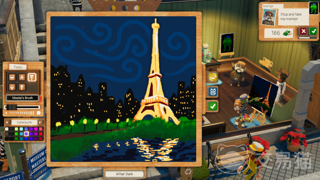 除此之外想要获得高昂的收益,就需要合理的判断每一名顾客的购买需求,如果玩家对一幅画作非常喜欢,那就需要结合当下人物的心情进行合理的可制定,但是制定的价格区间需要合理,以防因为价格问题导致玩家不再想购买画作,这个游戏戏简单,其实非常耗费玩家的时间和精力,因为需要在游戏中不断的进行创作,并且要和这些买画者周旋。
