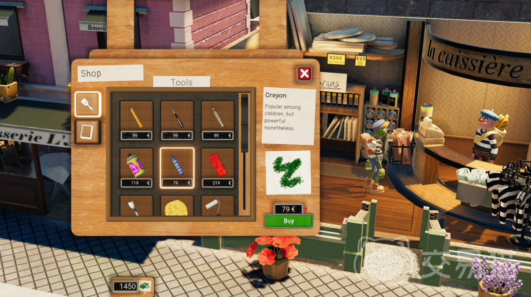这是一个自由度非常高的创造游戏,因为在游戏中有各种不同的场景,而且玩家可以在游戏中自行画画创作,在创作之前首先需要有纸和笔,玩家要找游戏中的NPC购买,在获得这些基础的画作物品之后,玩家就可以开始创作,通过完成游戏中的任务会吸引很多顾客来参观玩家画画,如果有人对玩家的话感兴趣,就会出钱购买,最开始的时候,玩家并没有办法决定自己的话售卖多少钱,但是等到后期小有名气之后,就可以自由的给画作定价。