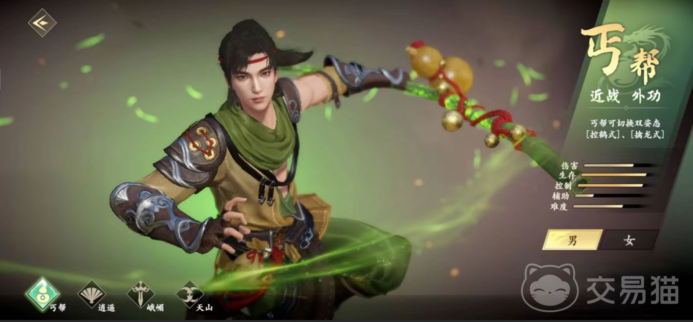 乔峰在游戏当中是丐帮这个职业当中的一个帮主,他的外貌是十分帅气的,同时作为帮主武功也是非常高强的,他还有一个隐藏身份就是契丹人的皇子,性格上面也是豪爽万分。但是他也有不为人知的身世以及悲惨的故事,在游戏当中,他主要的职业是一名近战型的输出角色,这也十分符合他丐帮帮主的身份。