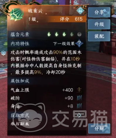 内功的获取办法也是比较简单的,因为现在不少玩家都不在执着于3+3内功玩法了,而是选择3+2+1,在内功搭配中,破重云也成功的登顶了副本神功之一,携带破重云之后,自身的输出能力最少是可以提升6%到9%的!