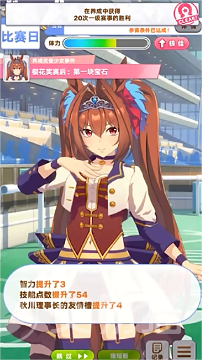除此之外,当赛马娘体力较低,但各位又不想休息的时候,就可以适当增加智力训练,不但可以提升赛马娘使用技能的概率,同时也可以小幅恢复体力。