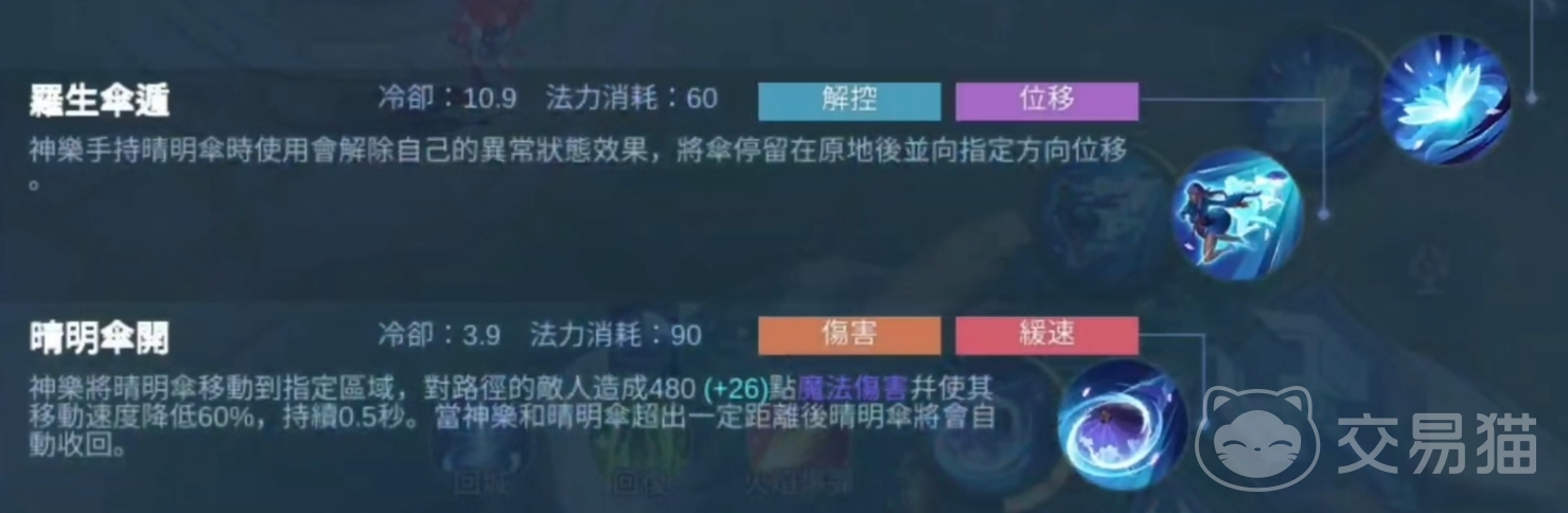 他的被动技能可以为自身得到一个护盾,同时对敌方造成眩晕效果,降低移速,一技能则是可以移动到指定的位置,同时在去到指定位置上面的路线上,如果有敌人还会对敌人造成降低移速,同时有一定的输出伤害,2技能则是解除自身的负面状态,可以说是灵活性十分高的一名法师了。
