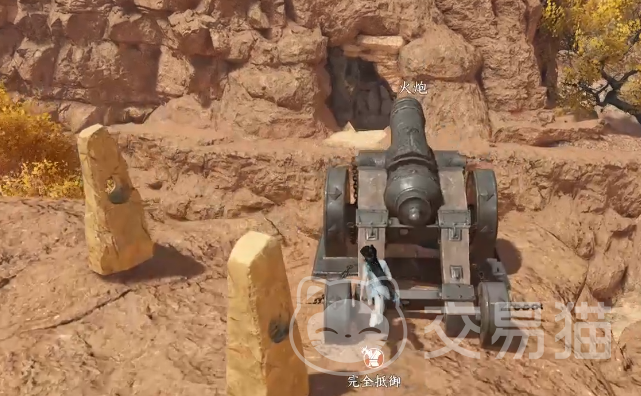 想要触发这个奇遇,大家就比如要解锁宋辽边境的地图,触发的地点是在这个附近,在边境图中大家可以找到一个魔鬼城的地标,在那边大家可以看看在(355、497)的地点,这个坐标点处应该是有一个炮台的,如果没有看到的话,玩家可以把自己的视角转动一下,只要朝向右边看应该就可以发现,到达这个炮台之后是可以操作炮台的,至极对准方向朝着对面那块有横行纹路的山壁进行轰炸,位置大家可以根据抛物线来进行调整,一定要正好炸到石壁上,这样才会出现一个隐藏的山洞,没有出现山洞的话大家再次尝试轰炸。