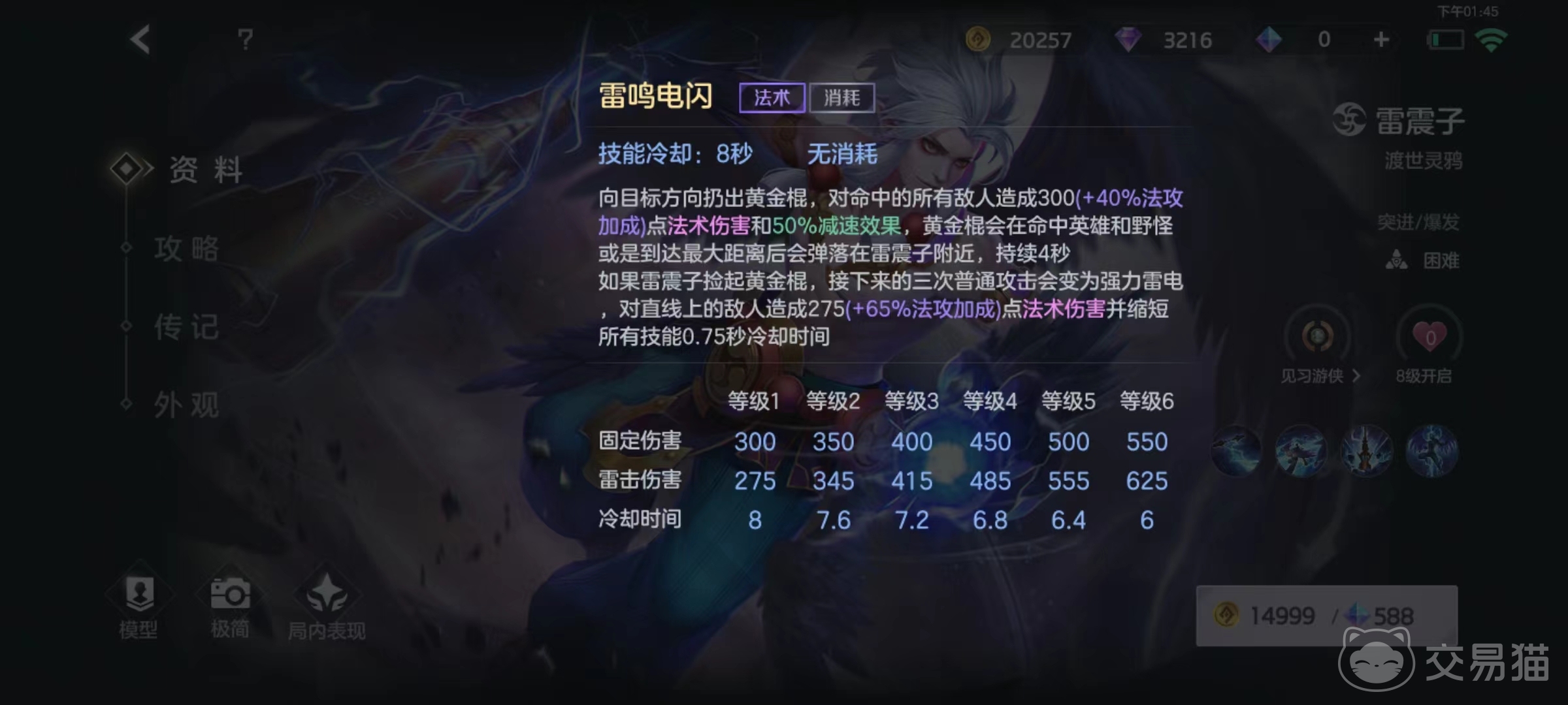 雷震子被动在命中敌人时会为自身积攒雷霆之力,只要能叠加到三层就能获得一层护盾。一技能朝目标方向扔出棍子,命中敌人后造成伤害及减速,击中英雄和野怪后会落到附近,如果能够成功捡起来,那么接下来三次普攻将得到强化。伤害直线上敌人并缩短所有技能冷却时间,所以捡棍子就成为操作中的难点,并不是所有情况下都能顺利捡到,对方也会干扰。能否在比较混乱战局中顺利捡到棍子,继续接下来的输出,是考验操作者的重要方面。