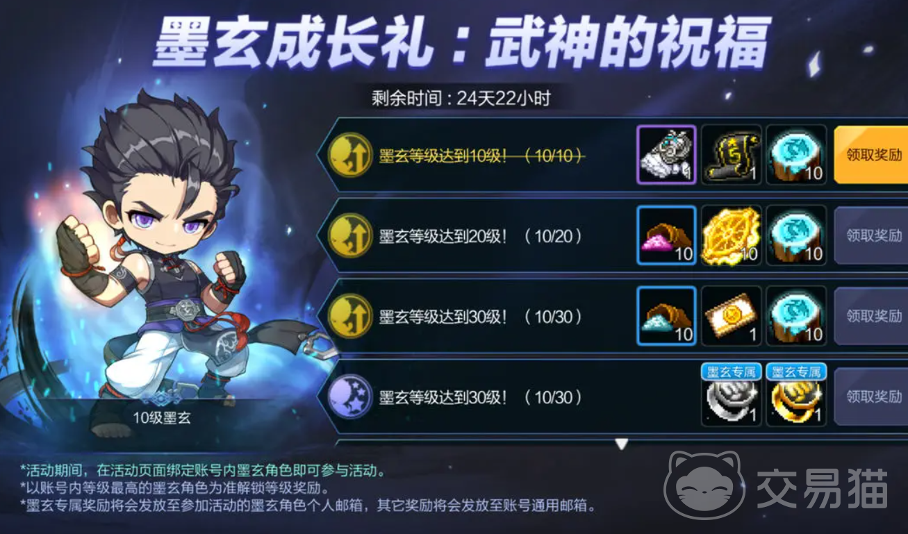 伴随着新职业的诞生,该时间也推出了其他活动。当你成功练了一个新的墨玄的话,在规定时间内可以领取丰厚奖励,例如极品装备、翅膀还有铭牌以及珍稀道具。并且还加入了新的副本,讨伐之后便可获得对应的奖品。