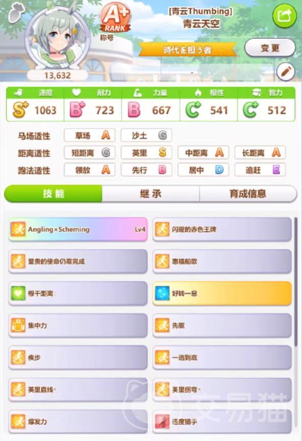 她的固有大招是在比赛进入到最末端的弯道处时瞬间加速提高自己的速度,这也是逃马的名称由来,同时她在各种有逃马技能的赛马娘当中强度也是最大的一个了。