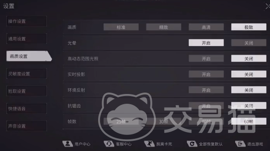 如果大家不追求极致的画质体验并且设备条件有限的话只需要在画质设置的第一行的画质选项中进行从“标准”到“极致”的简单画质调设即可。