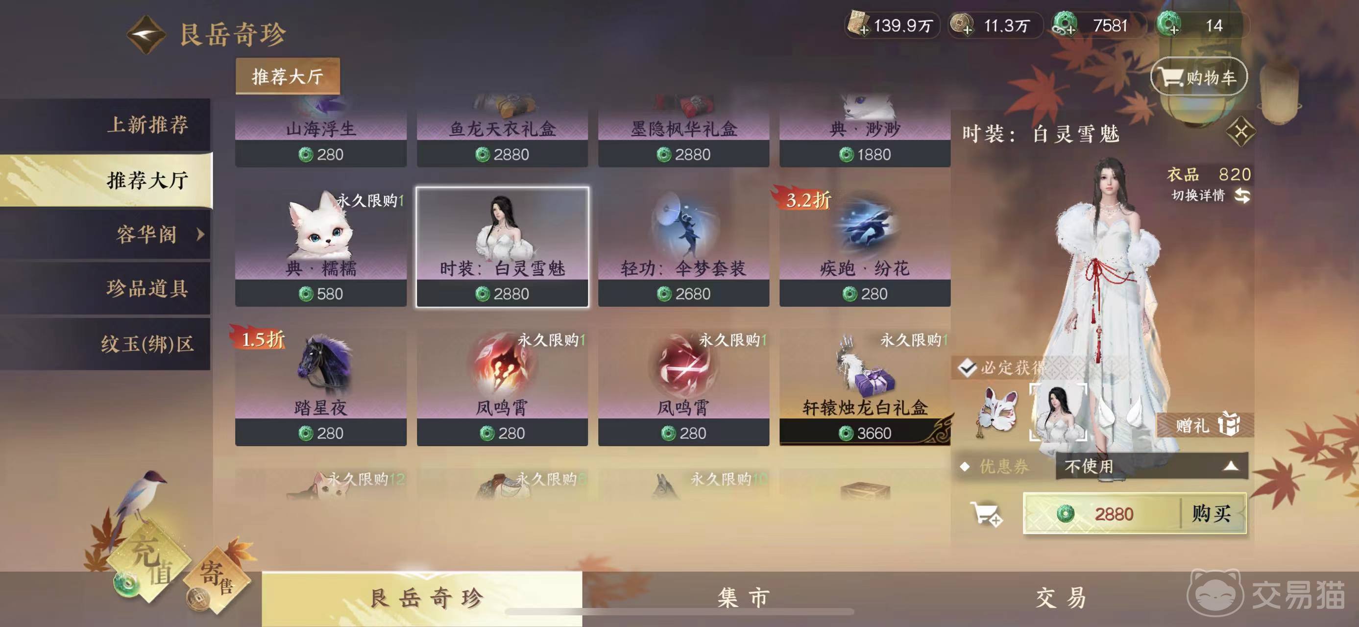 看完是不是对这个时装已经非常心动了,逆水寒手游白狐介绍就到这了,玩家们如果很喜欢的话,可以按照小编的办法去低价购买哦!