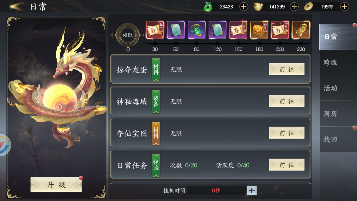 另外你还可以通过登录游戏完成任务来送真充,这是最简单也最实惠的方式。这样,你就能在游戏中购买更多的道具和资源,提高你的战斗力和等级。只要你每天上线,就能获得充值券,点击左上角的兑换页面,就能把充值券换成真实的充值金额。你可以通过参与游戏中的每日活动来领取礼包,这些活动包括打boss、签到、跨服、日常活动等。