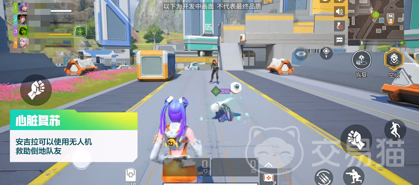 首先介绍的是安吉拉,它的无人机是治疗型无人机,可以通过扶队友和主动施放技能来召唤无人机,扶队友时她无需亲自出手,无人机可以直接代替她扶起队友,趁着这段时间,安吉拉可以观察附近,防止敌人趁机袭击,另外点击技能也可以主动召唤无人机,这个无人机会给她和她的队友持续提供回血,不过需要一定的时间才能够回满。