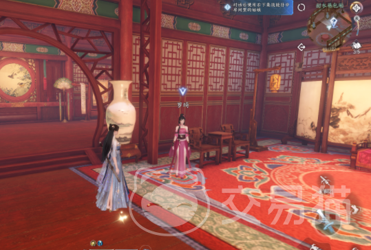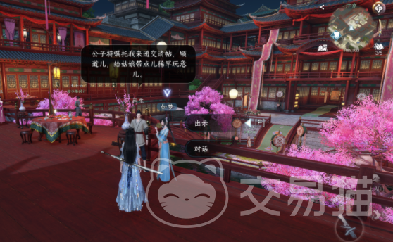 获得这个礼物之后,就可以偷听隔壁人的聊天内容,然后需要接受npc南寻如梦的考验,需要跟随游戏中的提示,点击对应的花瓣,成功之后就可以获得两幅画,这时候就会出现一个名叫柔儿的角色,需要帮助他找到丢失的玉佩,这个玉佩就在勾栏瓦肆中的楼梯下。
