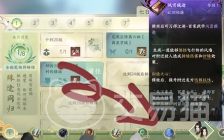 但是如果是新手玩家们要获得风雪载途的话就比较简单的,玩家们可以直接选择【江湖笔记】,在笔记中有一个七日旅途,玩家们需要完成七日旅途中的任务就可以获得积分奖励了,每到一个积分数目的时候就可以领取一个奖励!