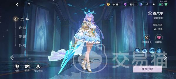 该角色在游戏中是一个突进爆发型的女性角色,她手握冰霜长枪,头戴冰晶皇冠,冰冷的眼神让她从外表上看起来就非常的高贵,她在游戏中的获取方法是通过商报获取,而且她在游戏的胜率榜上一直都是非常高的。