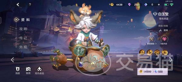 他是一个突进控制型的一个角色,在游戏中一般是打对抗路的,在这条路上他的胜率是非常高的,可以使用技能快速靠近敌人,并将其控制,然后对其进行输出收割就可以了,而且他在外形上非常的可爱,有着一对大大的毛茸茸耳朵,小小的身材,他的坐骑是一个葫芦变成的,还有一个非常可爱的小松鼠跟着他,这谁看了不心动呢?