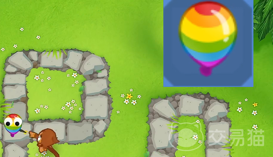 这个气球本身而言不具有各种免疫属性,但也是不少玩家们很不想遇到的气球之一。其根本原因在于彩虹气球被击破之后,会从中跳出两个黑白气球继续前进,黑白气球被击破就会出现两黑两白的气球,以此类推下去,一个彩虹气球相当于,八个以上的粉红气球,相当难以击破。