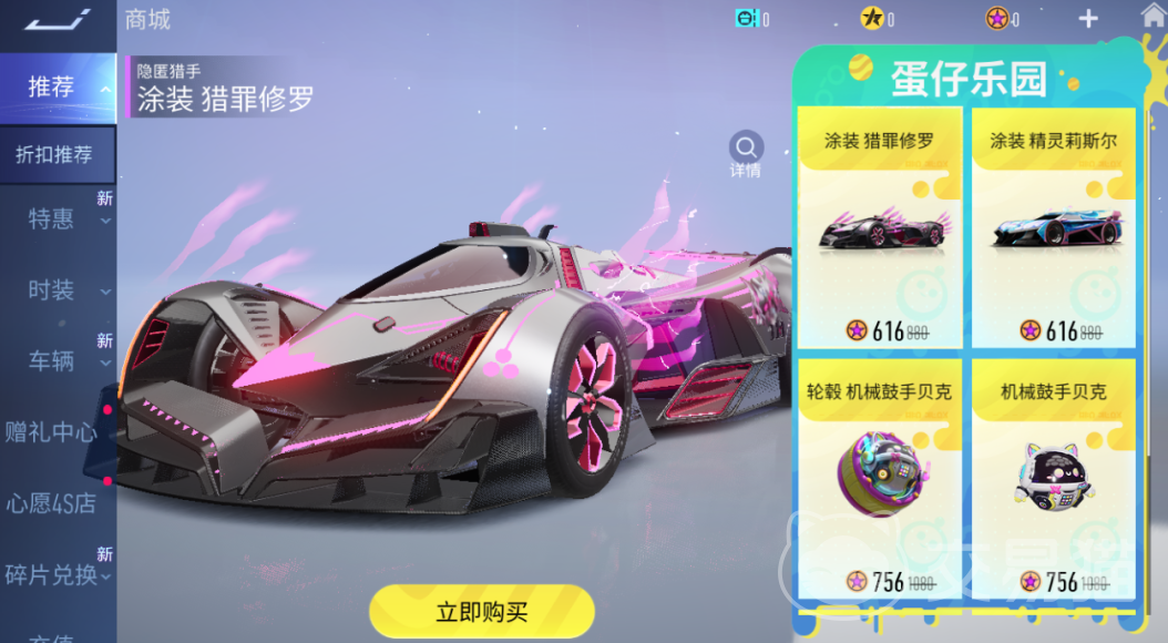 在本次活动中大家第一看到的是一个商城活动,当大家打开商城之后就能会看到蛋仔乐园这几个字,之后在下方就能看到这次活动推出的两款限定车辆和限定鼓手贝克了,这两款车辆和鼓手贝克的品质还是不错的,大家如果看上的话可以购买。