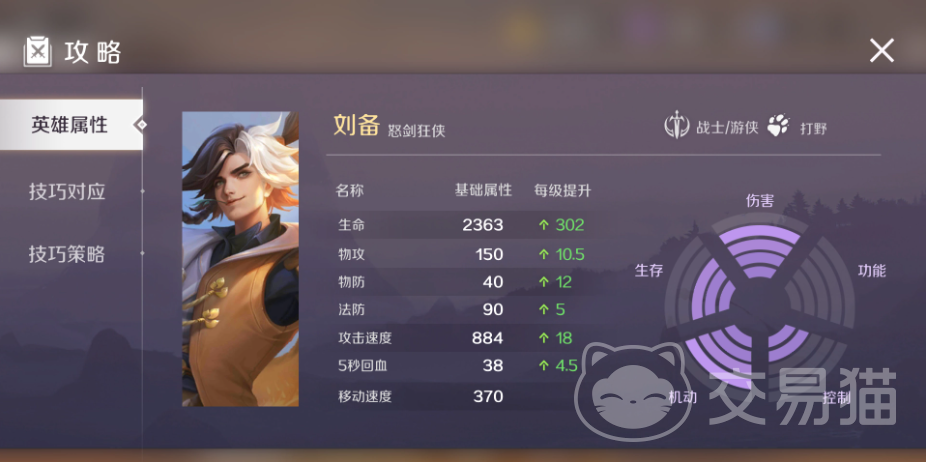 曙光英雄刘备的技能介绍就到这,他这名角色身法还是比较灵活飘逸的,可以走边路当成战士来使用,当然也是非常适合游侠的位置的,毕竟在场中穿梭就是他擅长的事情,不过需要看准进场的时机。