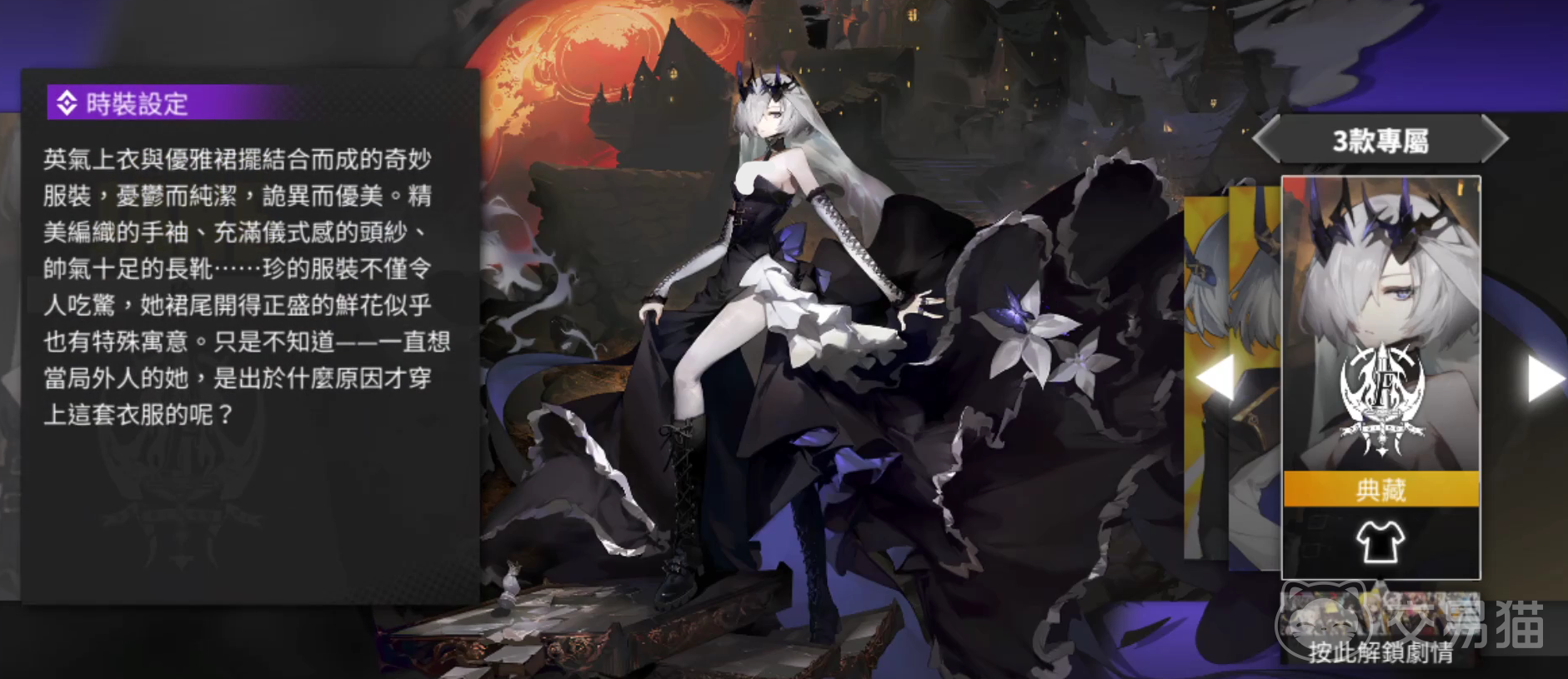 今天要给大家带来的便是我们角色珍的暗夜魅影,作为一个sr级别的紫卡角色,在剧情中占有一定地位的见证人,一直有不少玩家们对其视若珍宝。可以说,再加上这套服装的加持,让其的魅力更上一层楼。