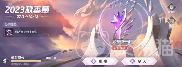 在这个游戏的设定中,大家达到符合的条件之后就可以开启排位玩法了,刚打开排位大家的段位只有曙光守卫,也就相当于青铜段位,曙光守卫打满之后就可以来到不屈勇士了,相当于白银,接着是无畏先锋,然后是精灵精卫,接着就到了大家期待的圣殿骑士了,然后是圣光骑士和超星主宰。