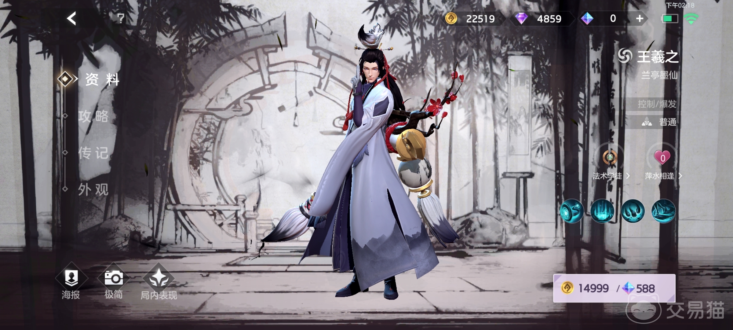 2技能是在地面画一个超大圈,对其中的敌人造成法术伤害,其圈内受到来自王羲之的伤害会提升,而触碰到边缘的敌人会被眩晕,这个是一个超大范围的控制技,可以利用这个技能来限制敌人的走位。