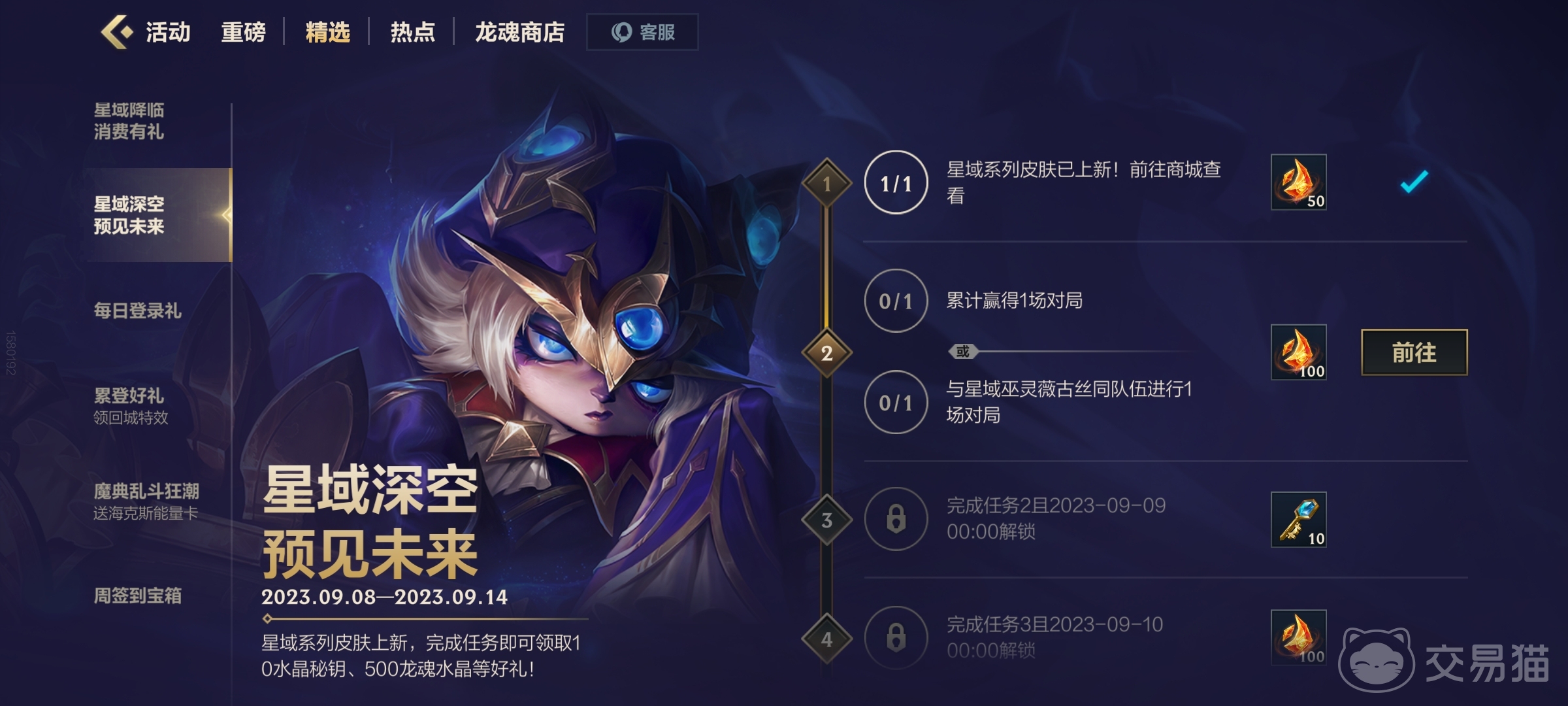 一同上线的还有2个活动,一个是消费达到不同阶段可以得到能解锁不同的奖励,一个完成一些简单的任务要求就可以得到熟练不菲的龙魂水晶以及水晶秘钥,后者可以打开战利品宝箱。
