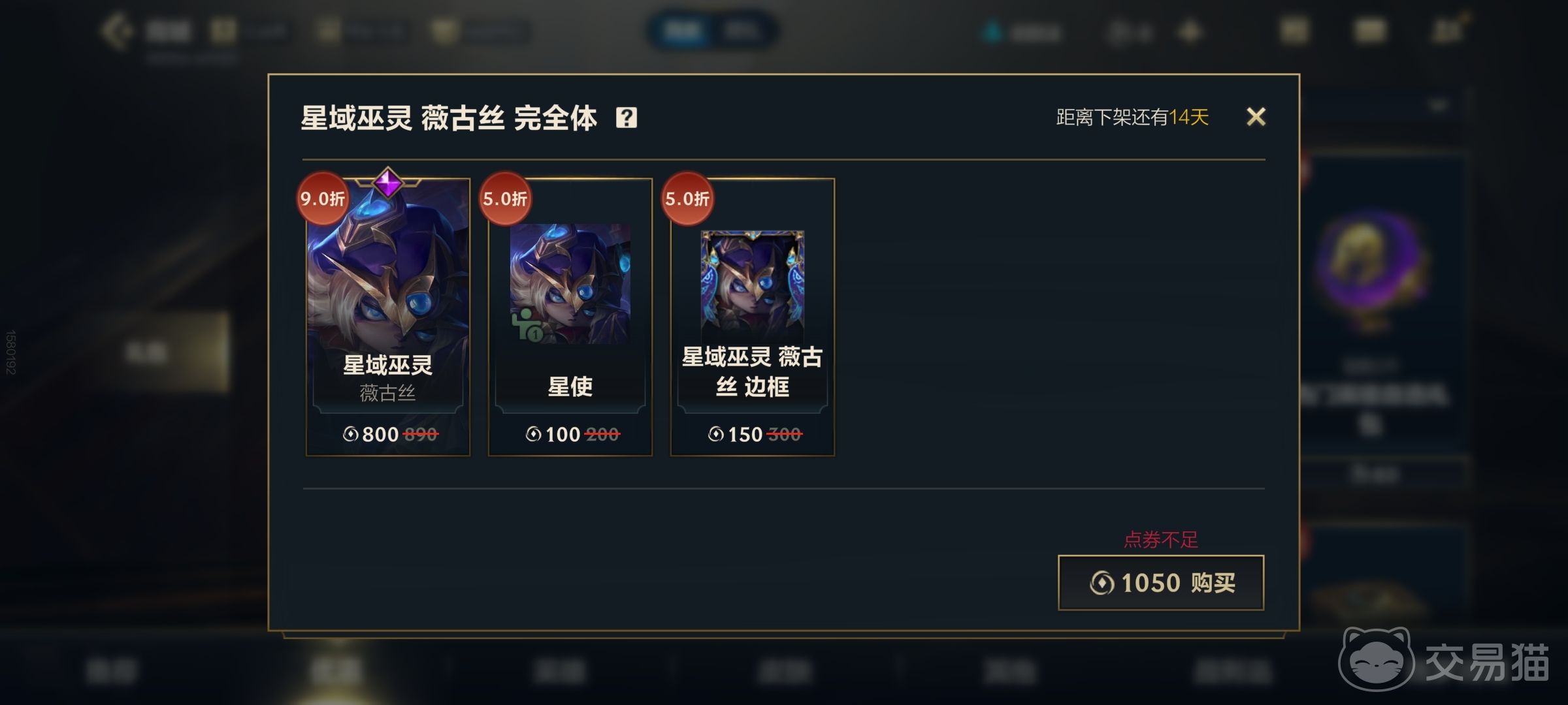 这一次活动并没有免费的皮肤给到,大家如果喜欢薇古丝的这套星域巫灵皮肤,可以考去商城直接花点券购买,既可以在“优惠”一栏中花费1050点购买完全体,包含新皮肤、姿态以及边框。也可以在皮肤一栏中花费890点券单买皮肤。