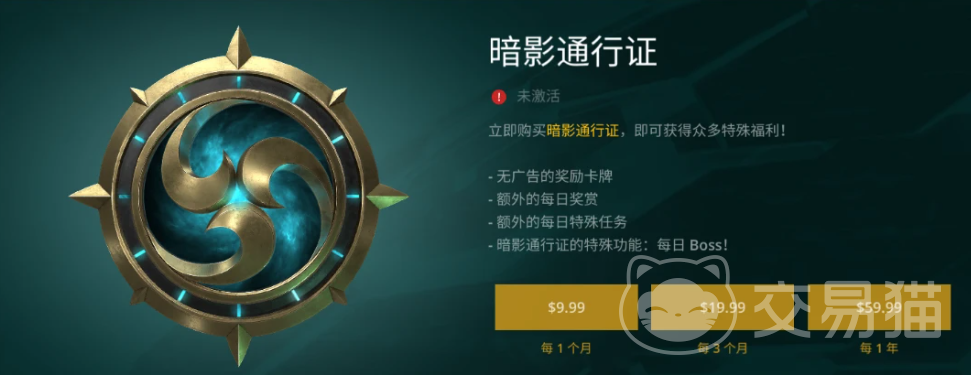 暗影通行证本质上说是一种付费的订阅服务,玩家可以在游戏内的商店中购买。购买暗影通行证后,玩家可以享受跳过广告的卡牌奖励服务、每日任务的额外奖励机制、新增特殊任务数量,除此之外还有个额外的功能,就是能够挑战每日暗影boss,回报十分不错。