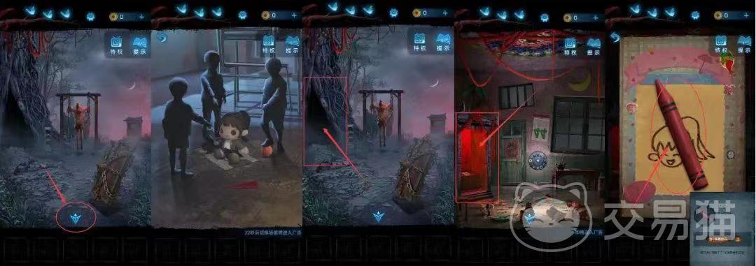 首先玩家们要来到箭头处进入到教室,然后触发一定的剧情再回到外面,回到外面就点击左侧黑漆漆的树洞,从树洞进去会来到房间,在房间当中也会触发到一定的剧情,等到触发之后再点击红轿子,在红轿子当中会有着一个道具蜡笔,获得蜡笔之后再翻看轿子当中的笔记寻找线索。