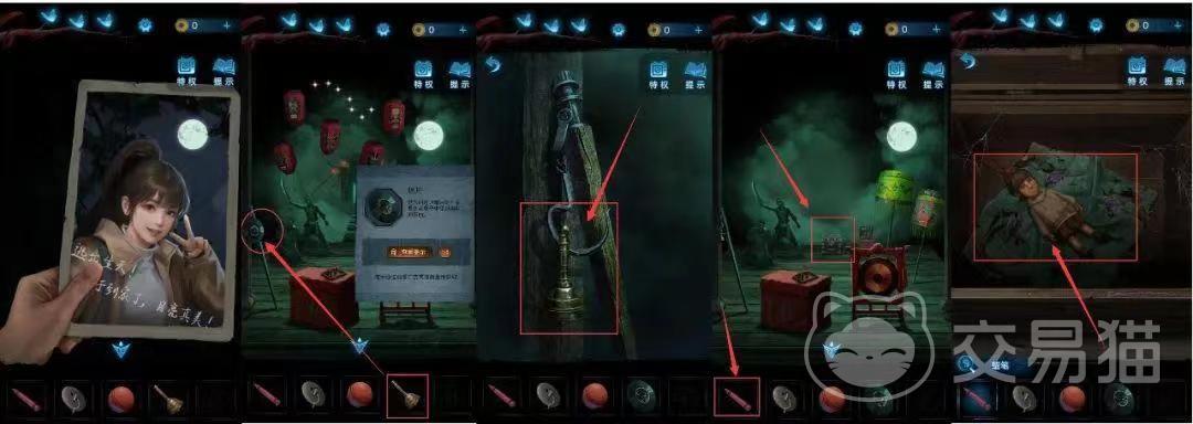 在这个房间要做的就是拿照片去点亮屋子,同时会发现有个铁棍上面会有一个唱片。最后再将铃铛挂在房间内的挂钩上面就可以了,这里的北斗七星过关方法就是点击门当中的背影一次就会亮一次,玩家们点一颗星星,再点击铃铛,三颗星星点击皮影,五颗星星点击锣,点击六颗星星要点击滑盖,七颗星星点击酒杯,每一颗星星对应的物品都不一样,所以玩家们要记住他们的顺序。