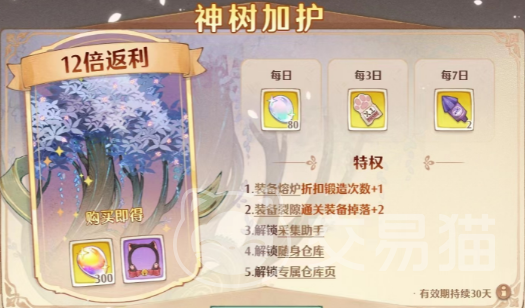 通过森之国度月卡值得买不相关内容,其实大家可以自己斟酌一下,因为这个月卡的价格确实是也不贵,大家要是想要上面任意一个特权的话,都可以选择购买月卡哦。