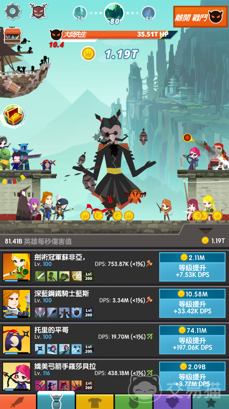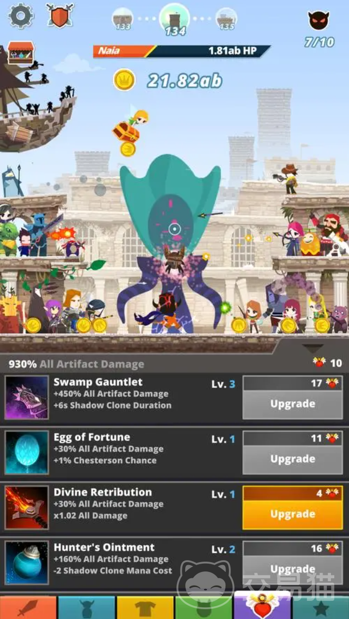 英雄是玩家的主要伤害来源,可以花费金币来解锁和升级英雄。英雄分为地面英雄和飞行英雄,不同类型的英雄对不同类型的泰坦有不同的效果。英雄还有各自的技能,可以在一定时间内提升自身或全体英雄的属性。宝宝是我们提升能力的重要渠道,玩家可以通过收集蛋来获得多种多样的宝宝。它们有各自的玩法特点,可以在激活时为玩家提供额外的加成。装备是玩家的重要辅助,玩家可以通过击败泰坦或购买礼包来获得不同档次和种类的装备。装备有各自的主要属性和次要属性,可以提升玩家或英雄的伤害或其他效果。部分装备还有套装效果,可以在集齐一定数量后为玩家提供永久的加成。