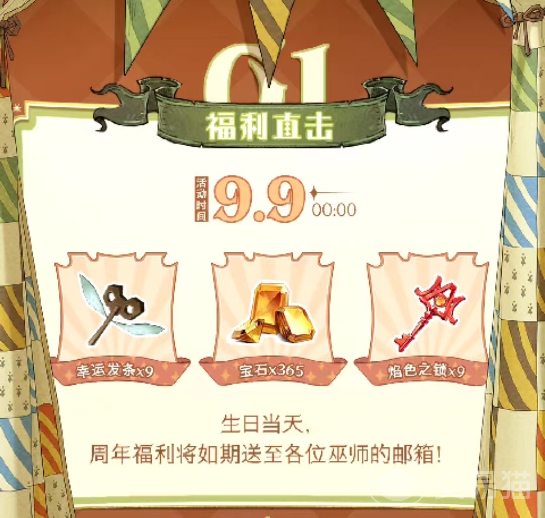 第二弹活动则就是需要玩家们在9月9号的时候登录游戏,登录进游戏时玩家们就会收到官方发布的信封,这封信封打开之后就可以获取到365个游戏宝石和九个焰色之锁,同时还有九个幸运发条,奖励的丰厚程度是非常可以的。