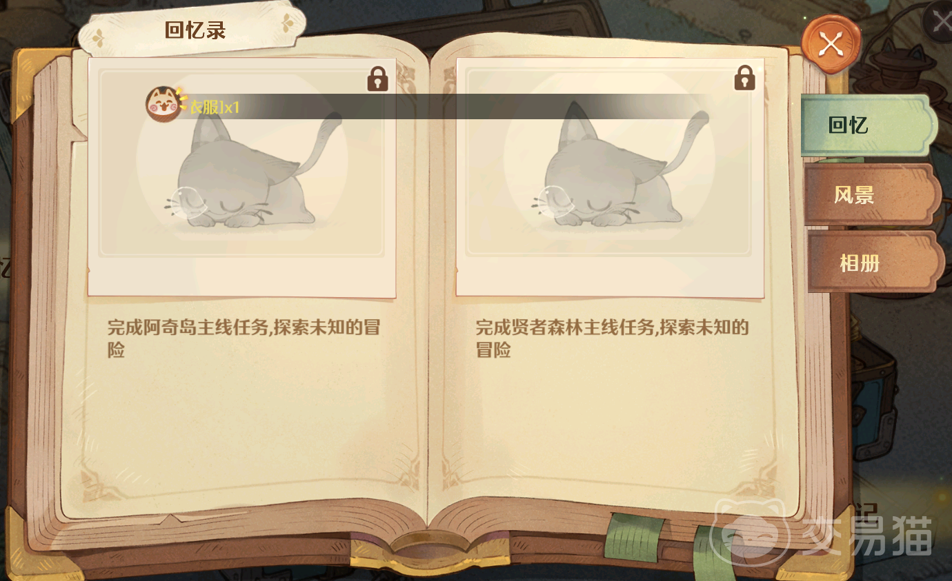 第二种玩法就是回忆录,这里面主要是包括回忆,风景和相册三个板块,其中回忆是跟主线任务的进度有关,风景则跟你探索到的场景多少有关,相册则是记录着过程中发生的一些事件。