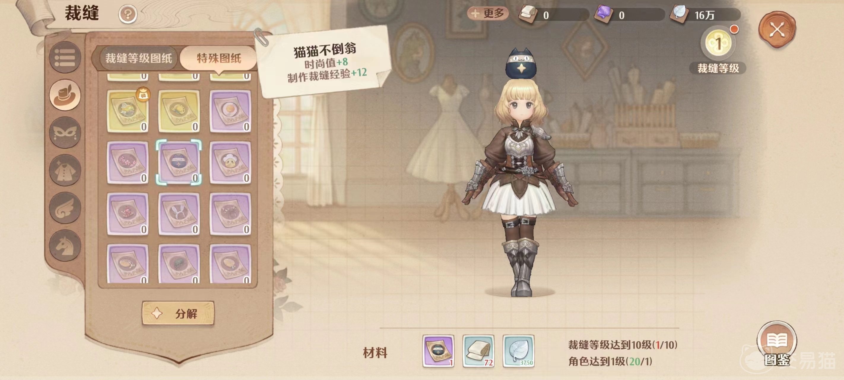 不过制作它需要先获取图纸和材料,材料基本都可以通过家园生产和日常任务获得,但它的图纸却有一定的获取难度,因为其图纸属于特殊图纸,想要获取的话只能通过两种途径,第一种就是升到30级后在家园的织布机进行生产,不过这种途径也不稳妥,因为它只能概率产出猫猫不倒翁的图纸。