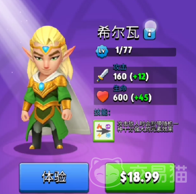 游戏中另外一个比较值得玩家尝试的角色就是希尔瓦,这个角色在游戏中是一个精灵王子的设定,所以外观非常独特,有着一头金发,而且整体的人物攻击力和生命值也都比较高,最重要的是在攻击过程中会产生一种非常强大的元素攻击,同样也是一个输出能力比较强的角色。